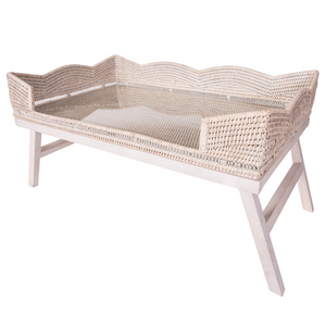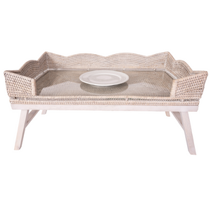 Scallop Design Breakfast Tray with Wooden Legs & Glass Insert